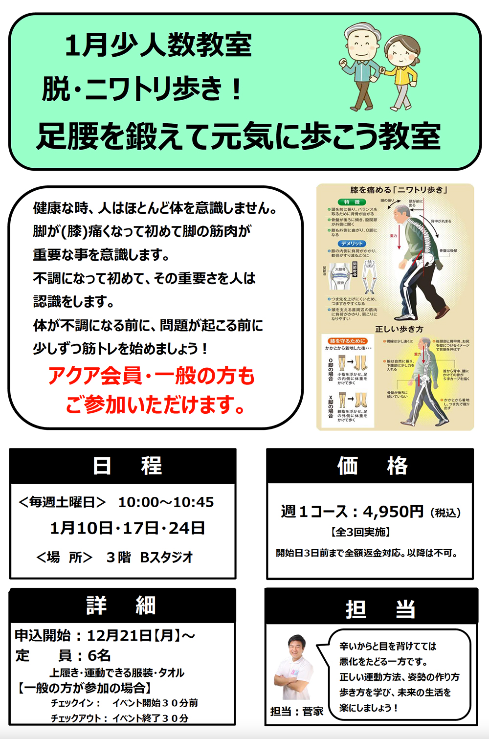 この歩き方教室では、丈夫な足腰、